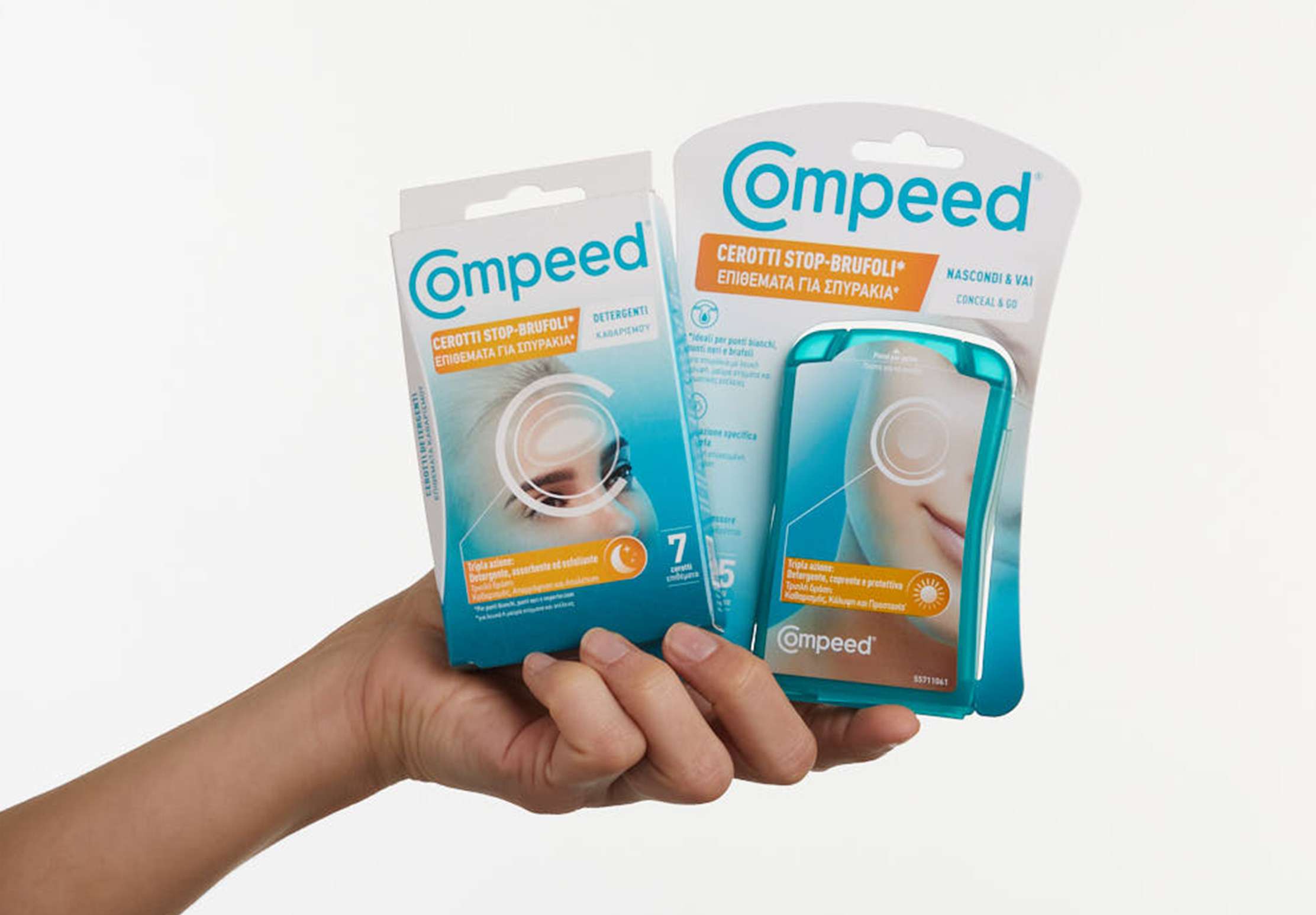 I cerotti Stop-Brufoli* Compeed® sono studiati per nascondere e ridurre l’aspetto delle imperfezioni della pelle, inclusi (*brufoli, punti neri e punti bianchi). La tecnologia idrocolloidale assorbe il sebo in eccesso e aiuta a rimuovere delicatamente anche le impurità più ostinate. Adatti a tutti i tipi di pelle.